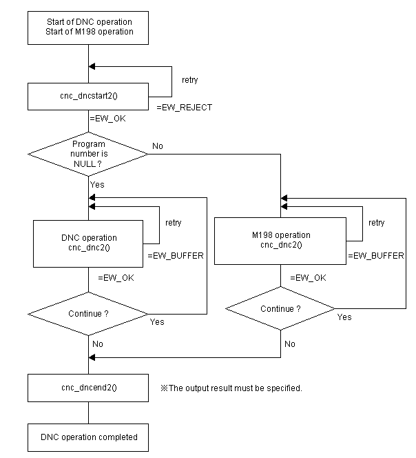 This function returns EW_OK in case that DNC operation or M198 operation are started.